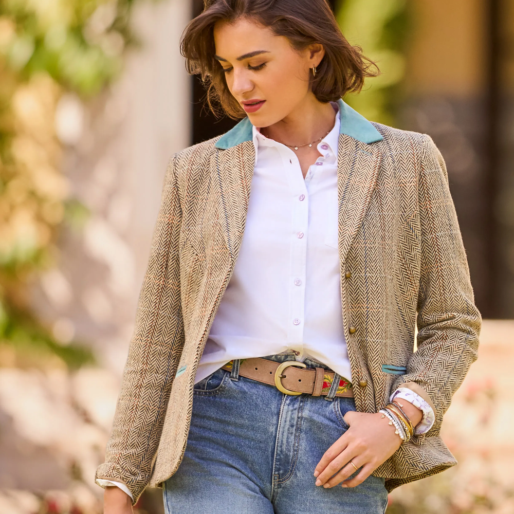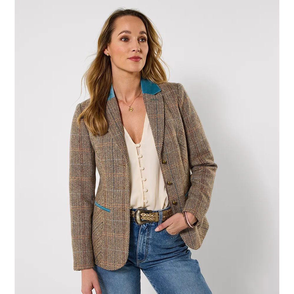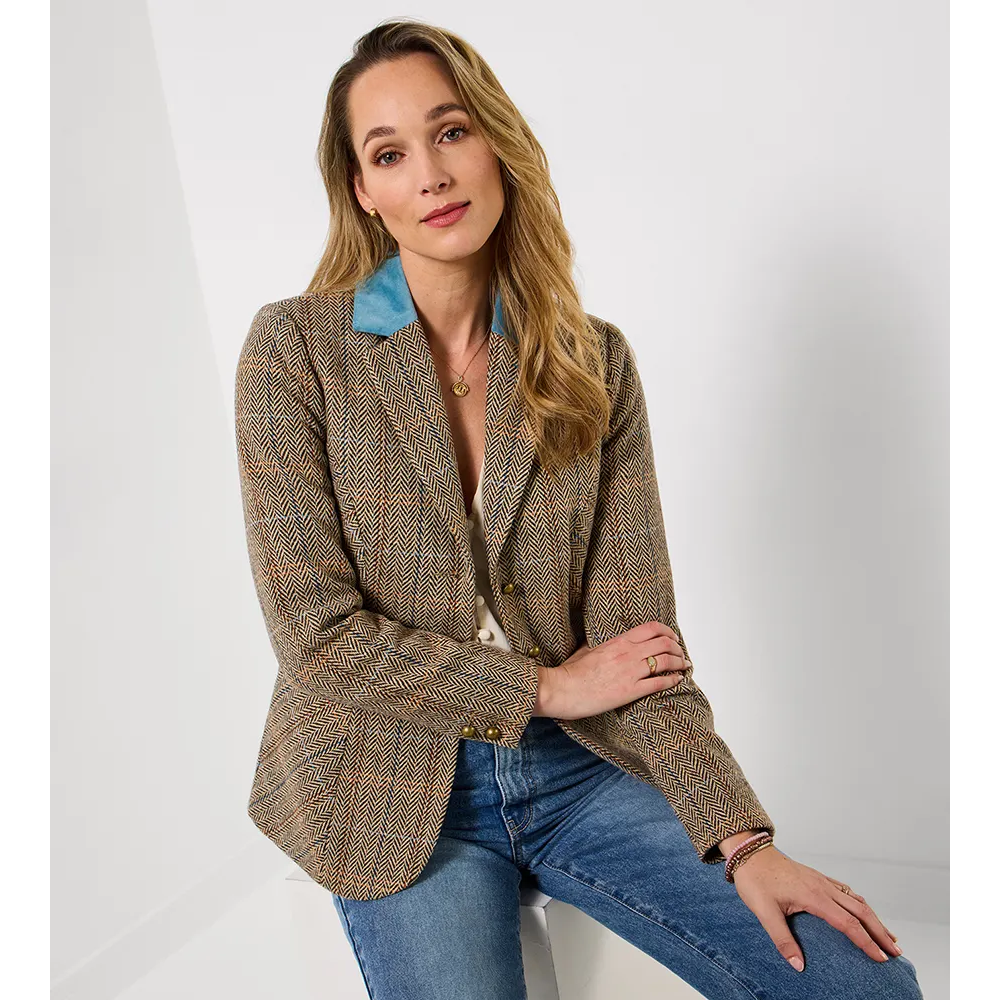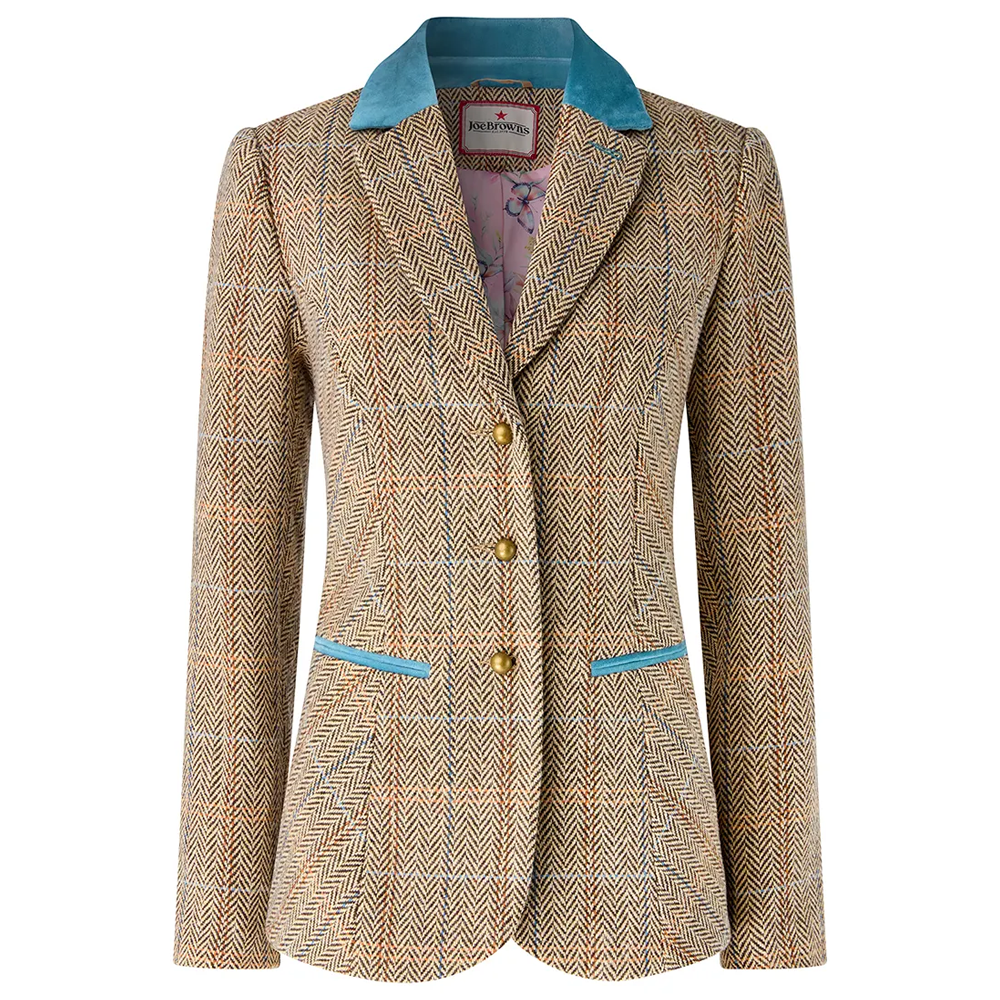 Our remarkable womens jacket has earned top spot in your spring wardrobe. Putting a fresh spin on classic tweed, we added contrasting velvet at the collar and pockets. Grabbing attention for all the right reasons, hit the full heritage look with the matching waistcoat and watch your style wow.