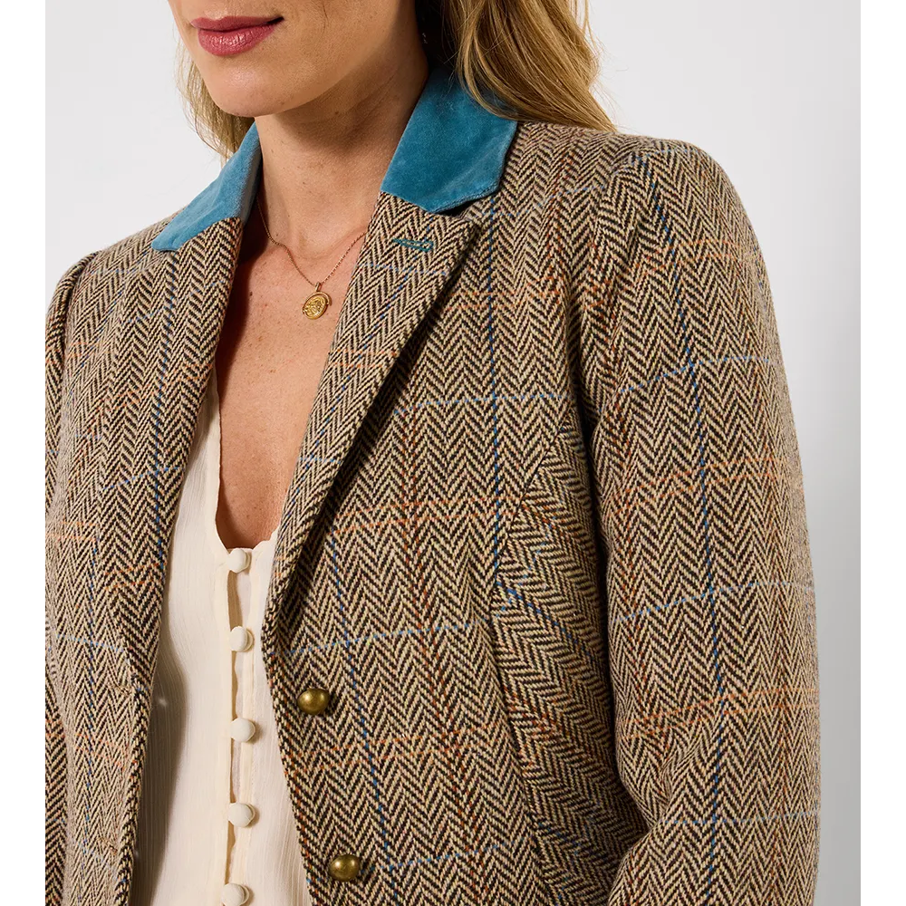 Our remarkable womens jacket has earned top spot in your spring wardrobe. Putting a fresh spin on classic tweed, we added contrasting velvet at the collar and pockets. Grabbing attention for all the right reasons, hit the full heritage look with the matching waistcoat and watch your style wow.